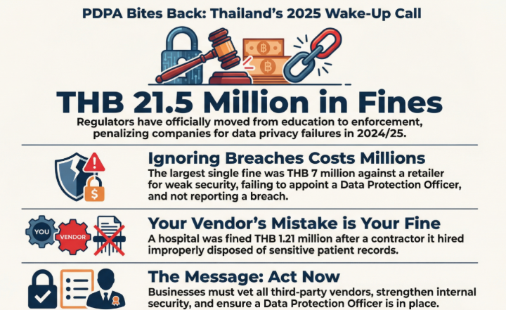 For the past few years, many businesses in Thailand have operated under a comfortable assumption: as long as we try, we won't get into too much trouble. Regulators seemed focused on education rather than prosecution. But as we look back at the landscape of 2025, that sentiment has officially expired. The Personal Data Protection Committee (PDPC) has shifted gears from "awareness building" to "active enforcement," resulting in fines totalling over THB 21.5 million issued in 2024/25.